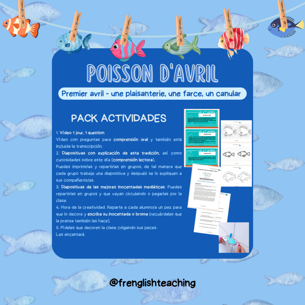 Os traigo este recurso para que celebréis le premier avril y llenéis vuestra clase de bromas e inocentadas.